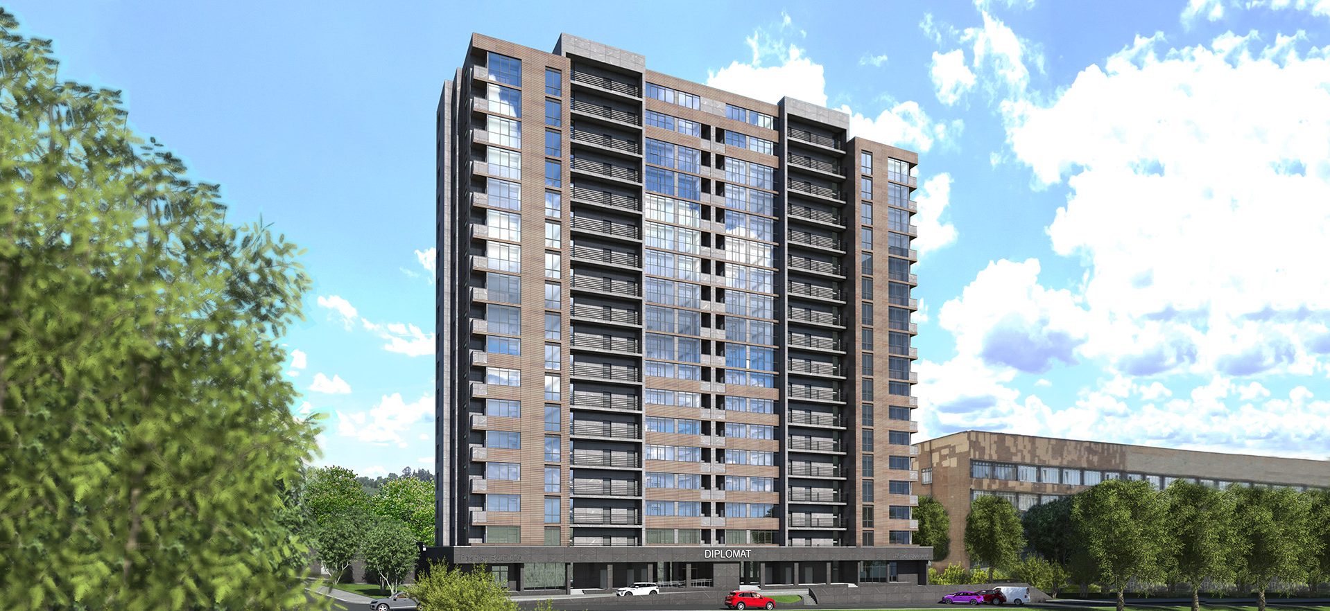 «Дипломат» — это новый жилой комплекс премиум-класса в центре Харькова, концепция которого предполагает комфорт и уют для жильцов. Проектом новостройки предусмотрены объекты коммерческой инфраструктуры, подземный паркинг и кольцевая придомовая дорога. Чистый воздух и места для пеших прогулок жильцам новостройки обеспечит расположенный по соседству парк «Сажин Яр», на который открывается панорама из окон квартир. В оформлении фасадов использована спокойная светло-коричневая гамма, которая в сочетании с панорамными окнами и стеклянными балконами позволит комплексу выделиться на фоне соседних построек.